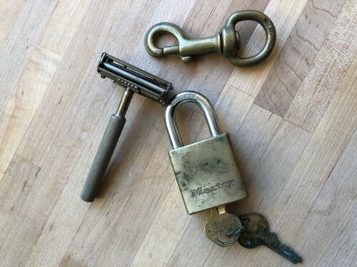 Master lock Brass with keys Italy bronze keychain brass antique Valet razor lot