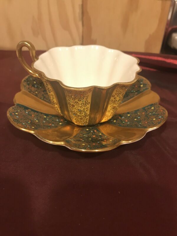 Title (ebay affiliate link): Rare Royal Stuart Spencer Stevenson Tea Cup Saucer Polka Dot Hand Painted