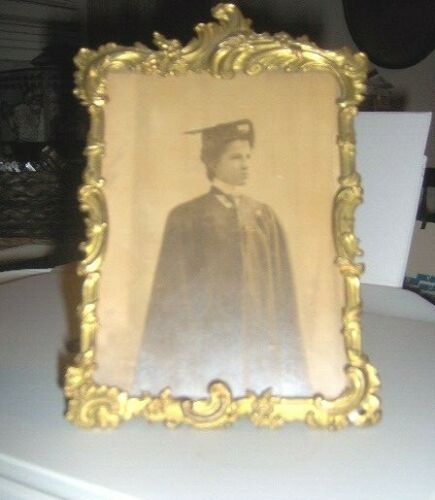 old BRASS FRAME with 4 x 6 CARBONETTE PHOTO OF BROOKLYN GRADUATION GIRL