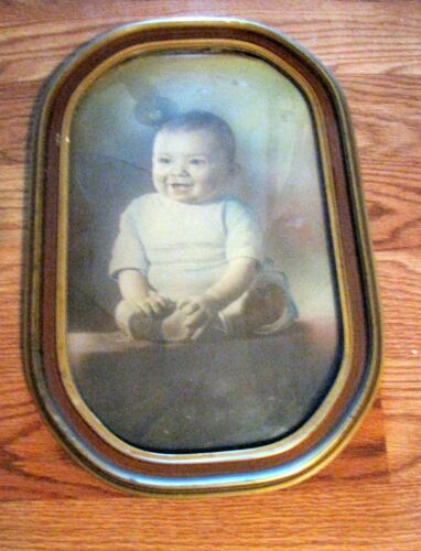 Title (ebay affiliate link): Vintage Oval Convex Bubble Glass Wood Frame w/ Hand Tinted Baby Photo