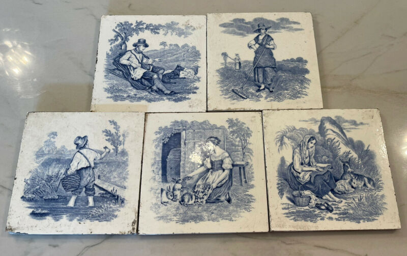 Minton China Works Tiles - Set Of 5 -1860’s Mark