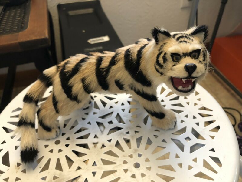 Tiger Figurine Made W/ Real Fur Decorative Piece