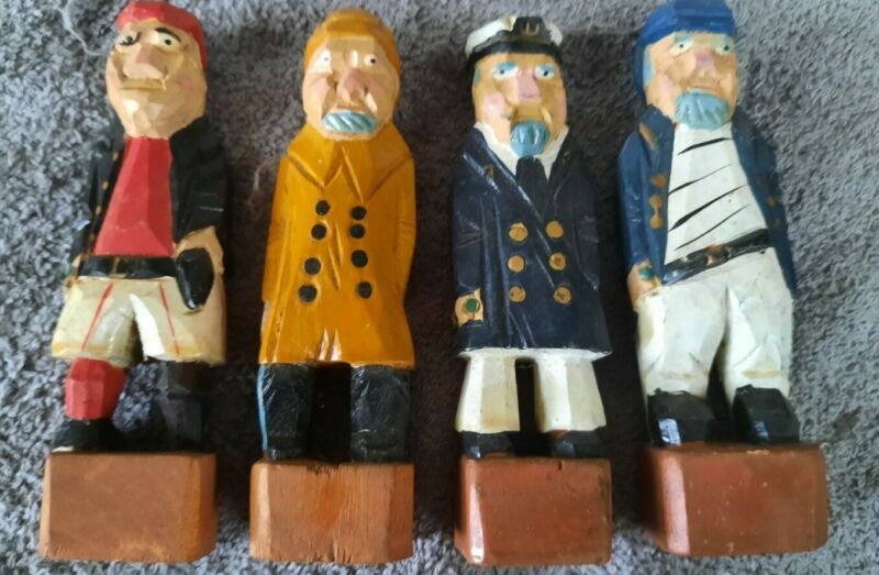 Title (ebay affiliate link): Lot Of 4 Vintage Hand Carved Wood Sea Captain Sailer Wood Figurines