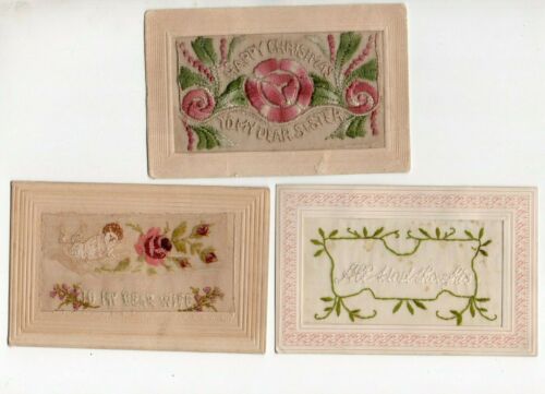 3 VINTAGE postcards: WORLD WAR ONE EMBROIDERED SILK GREETINGS