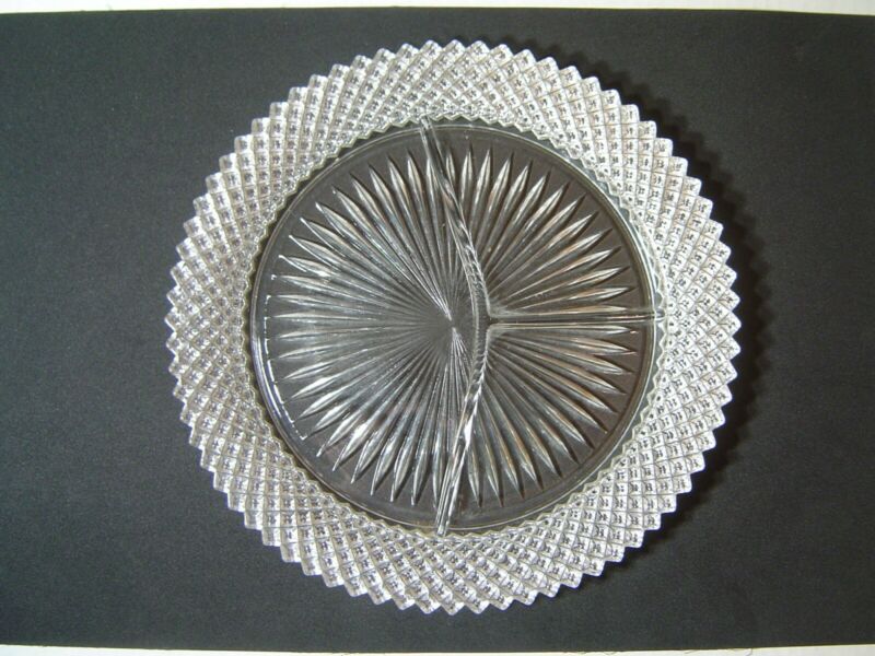 DEPRESSION GLASS MISS AMERICA Diamond 10" GRILL PLATE Clear crystal 5 AVAILABLE