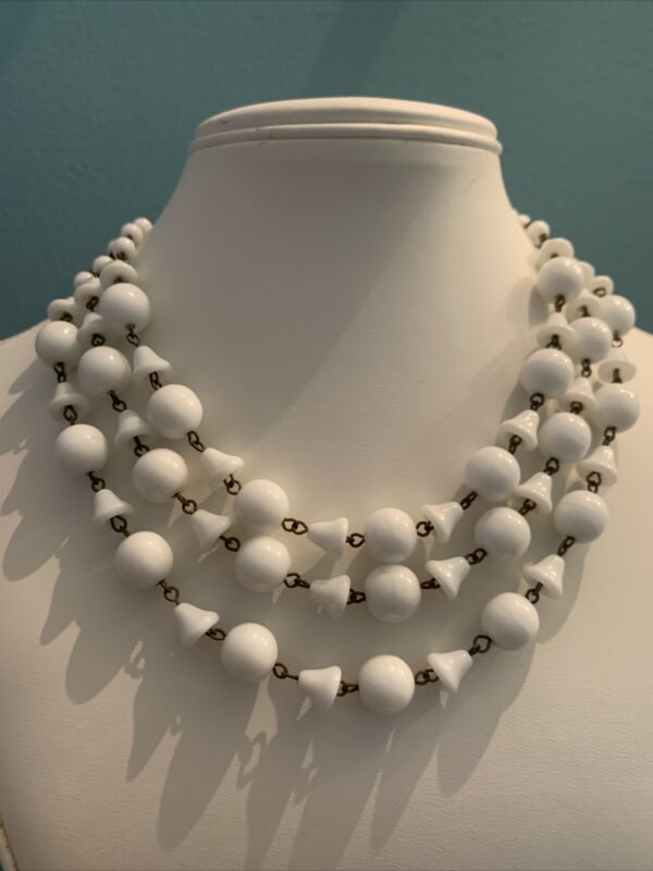 Vintage White Milk Glass Bell Beaded Necklace Jewelry FF98