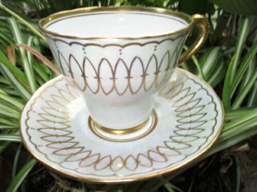 CUP SAUCER SALISBURY MODERNISTIC CORSET GOLD EYELET LACE PASTEL GOSSAMER LUSTER