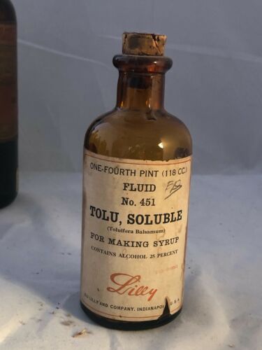 ANTIQUE TOLU SOLUBLE DRUG STORE BOTTLE BY LILY