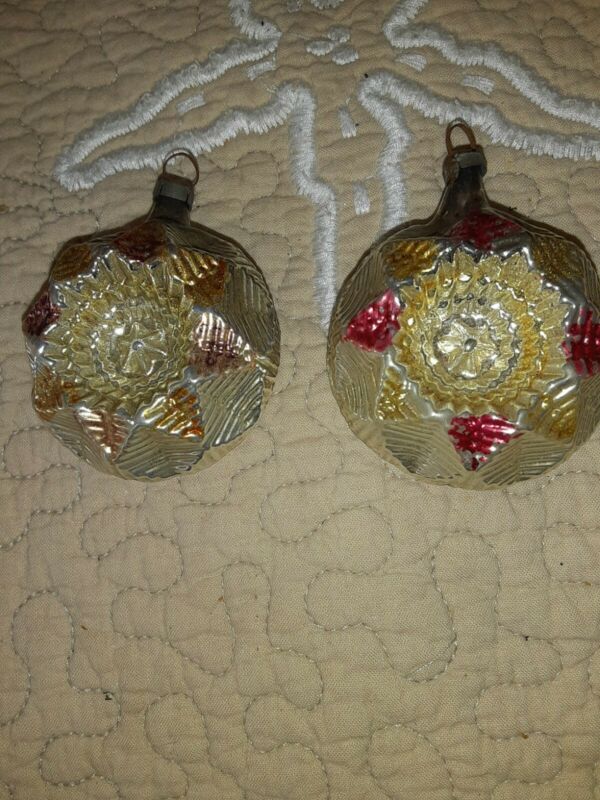 2 German Antique Indent embossed flower? star? Vintage Christmas Ornament 1930''s