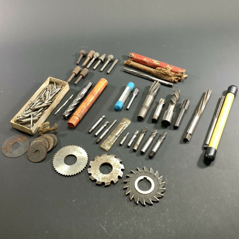 Title (ebay affiliate link): HUGE LOT x70ish METAL WORK REAMERS CARBIDE END MILLS BURRS DRILLS SLIT CUTTERS