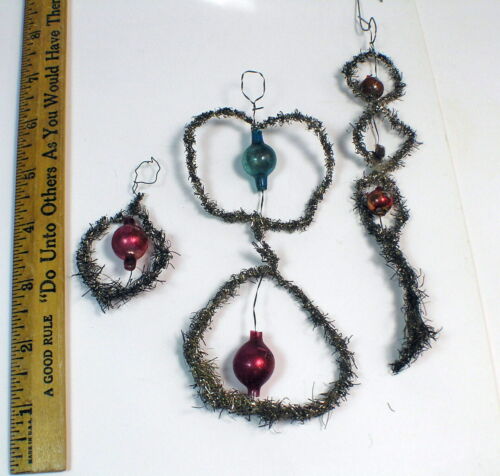 Victorian Christmas Ornament Mercury Glass Bulb Wire Tinsel