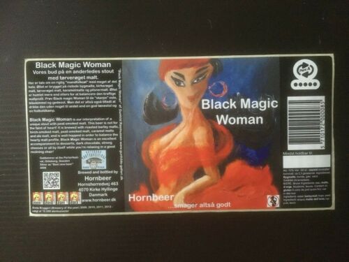 Title (ebay affiliate link): Danish Micro Brewery Beer Label "HORNBEER" Black Magic Woman Stout MINT!!!!!!!!!