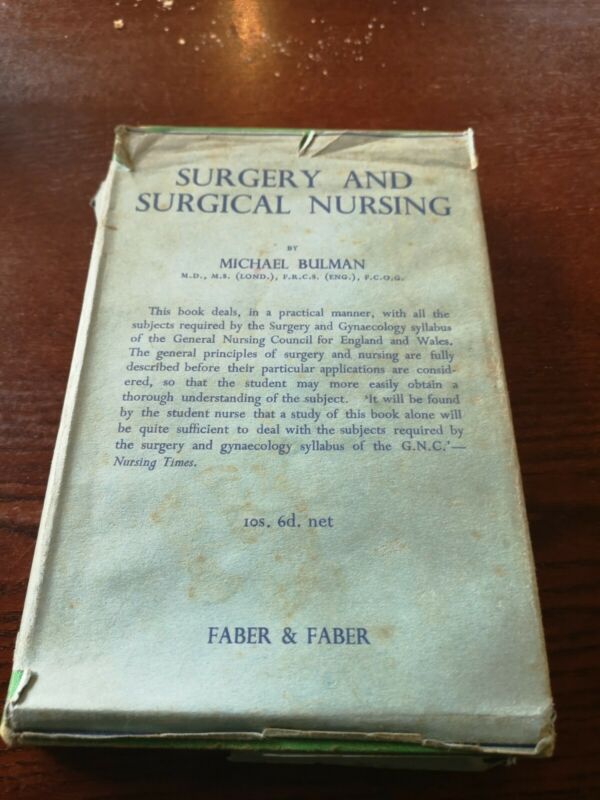 Title (ebay affiliate link): Surgery and Surgical Nursing by Michael Bulman. 2nd Edition 1938. Dust jacket.