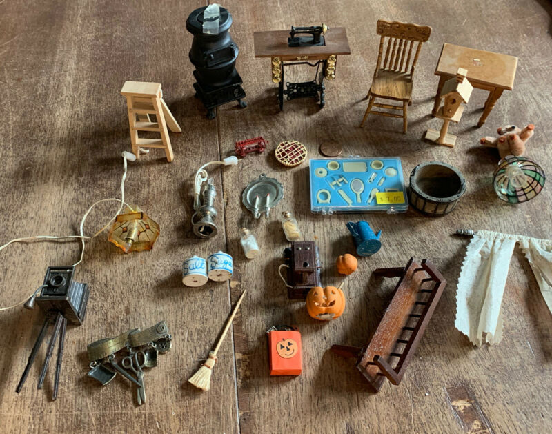 Title (ebay affiliate link): Vintage Dollhouse Miniatures Furniture Accessories Lot # 7F