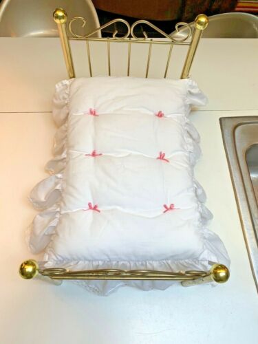 Pleasant Company American Girl Vintage Brass bed~Mattress~White spread pink bows