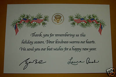 Title (ebay affiliate link): PRES BUSH WHITE HOUSE HOLIDAY THANK YOU CARD USA FLAG