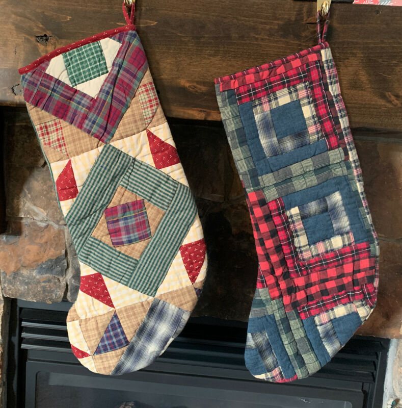 Primitive Christmas Quilted Patchwork Country Stockings set/2 New/unused