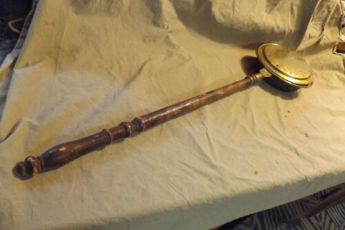 Title (ebay affiliate link): Primitive Antique 19th C Embossed Brass Bed Warmer Turned Wood Handle