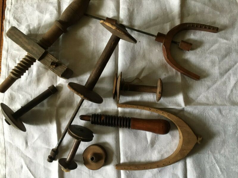 Title (ebay affiliate link): SPINNING WHEEL PARTS-LOT OF 9 PCS-ALL OLD.-FLIERS, TENSION SCREWS,SPOOLS ETC.