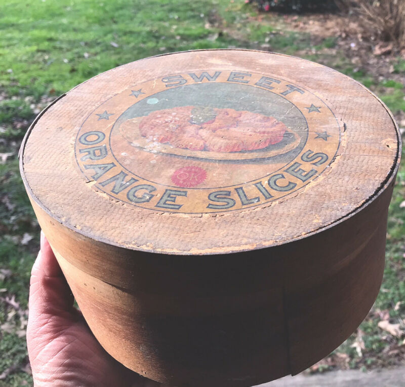 Title (ebay affiliate link): Original Antique Oval Band Box Early Shaker Style Pantry Box With Advertising!