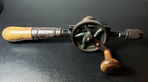 Vintage Lutz File Co Cincinnati Ohio Egg Beater Hand Drill Wood Handle