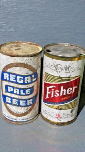 REGAL PALE & FISHER_ SAN FRANCICO CA._ FLAT TOP BEER CANS -[READ DESCRIPTION]-