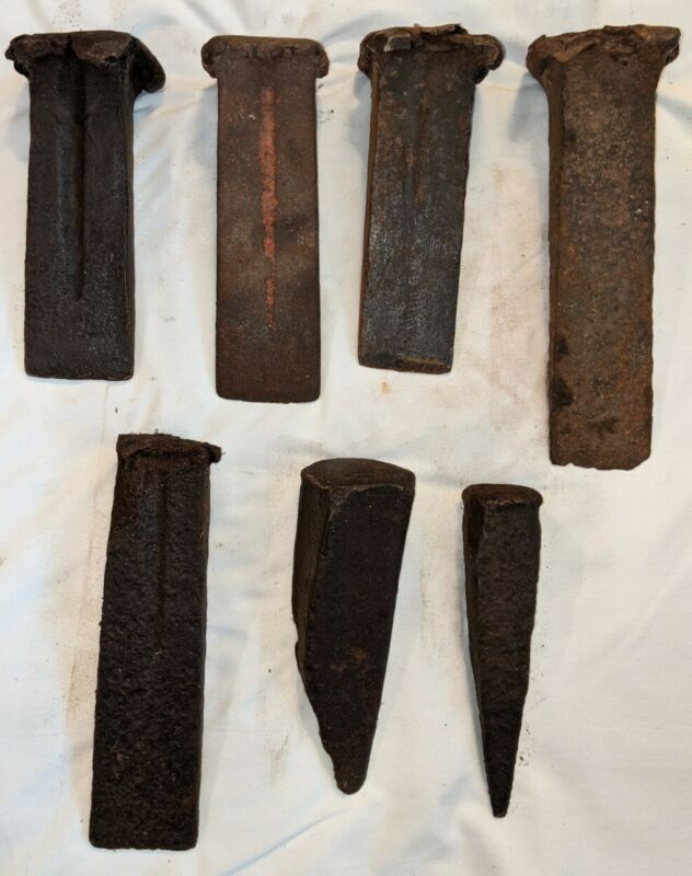Title (ebay affiliate link): ANTIQUE PRIMITIVE Vintage Lot of 7 Wood Splitting Wedge Wedges Firewood 20 Lbs