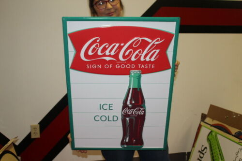 Title (ebay affiliate link): Coca Cola Fishtail Soda Pop Gas Station 28" Reissue Embossed Metal Sign