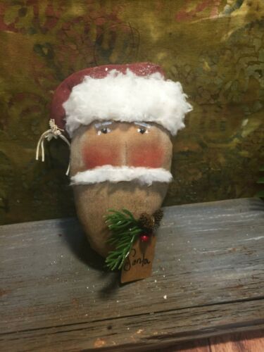 Title (ebay affiliate link): *Primitive 7x4.5in SPARKLED SANTA HEAD FABRIC HANDMADE Country old rusty doll*