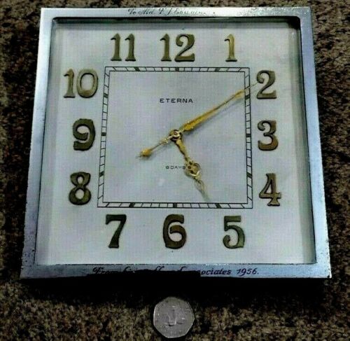 Title (ebay affiliate link): VINTAGE SWISS CLOCK - ETERNA 8 DAY ART DECO LARGE FLAT/MANTLE TYPE - LOVELY