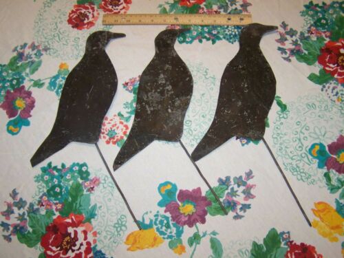 Title (ebay affiliate link): 3 Vintage Antique Primitive Handmade Metal Crow or Raven Decoys 1950s