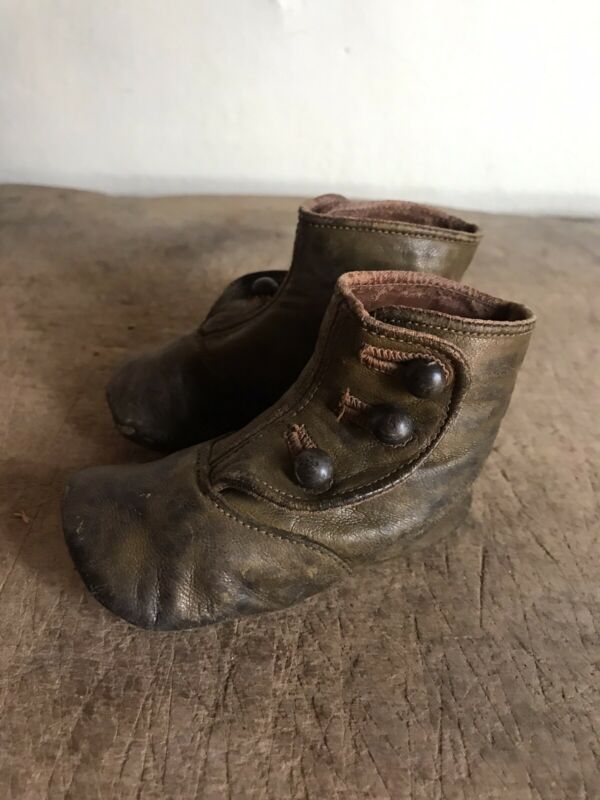 Title (ebay affiliate link): BEST Early Antique Childs Brown Olive Green Button Tall Leather Boots AAFA