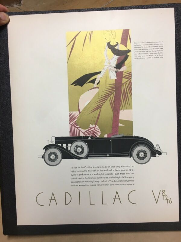 Title (ebay affiliate link): 1931 AUTO CADILLAC V-12 ENGINE ART DECO DESIGN VINTAGE AD RARE