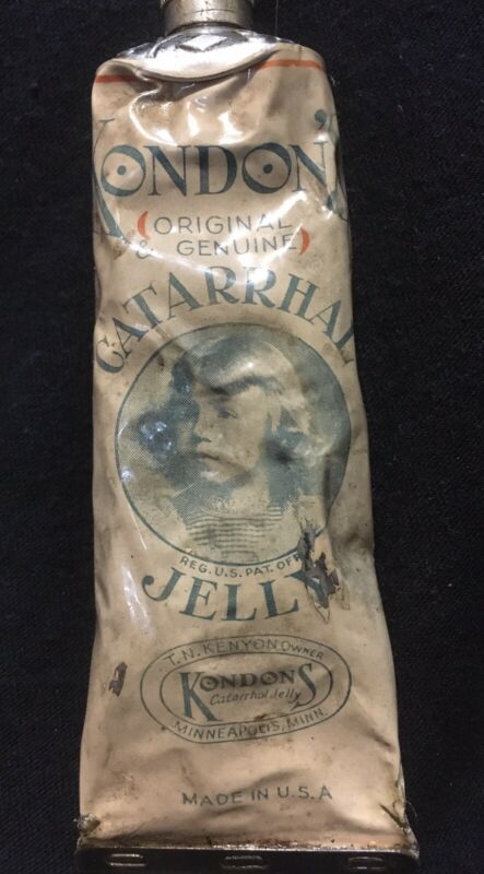 Title (ebay affiliate link): Antique Medicine Tube: Kondon Catarral Jelly w/ most Contents.Great Girl Graphic