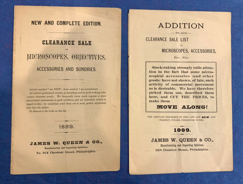 Title (ebay affiliate link): James Queen Microscope Catalog 1889 Clearance Sale