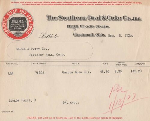 Title (ebay affiliate link): 1926 Receipt Letterhead Southern Coal & Coke Co. Cincinnati Ohio OH - $1 S/H