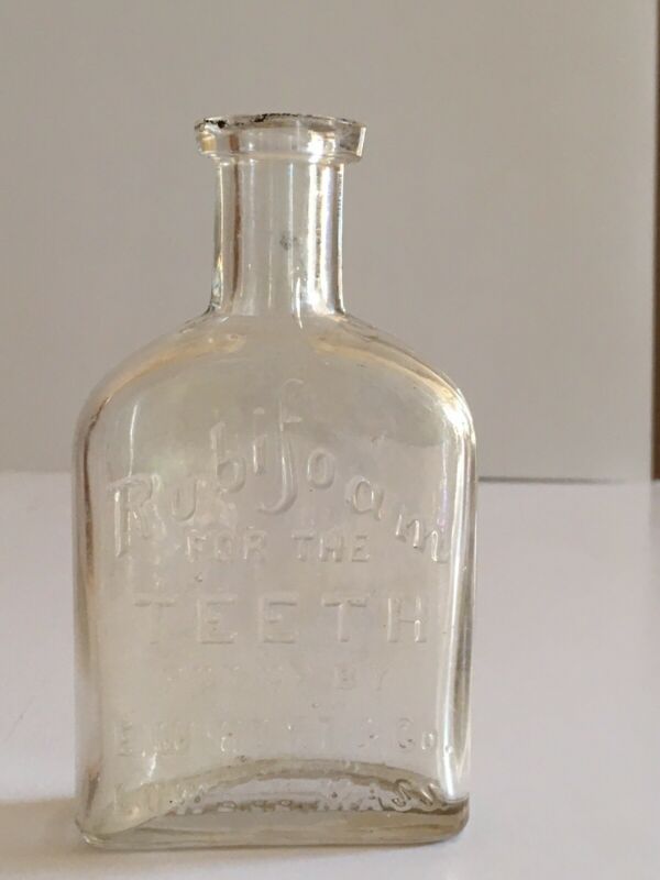 Title (ebay affiliate link): Vintage Rubifoam for the Teeth E.W. Hoyt & Co. Lowell, Mass Glass Dental Bottle