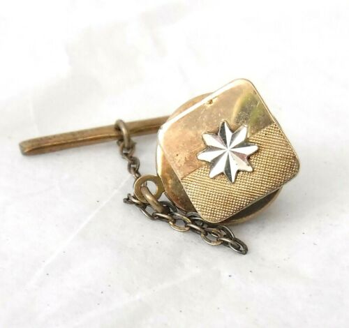Title (ebay affiliate link): Vintage Gold on Silver Tie Tack / Pin w T-Bar Safety Chain w Central Design