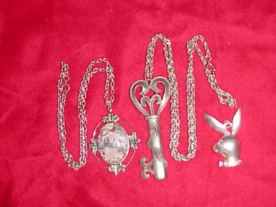 Title (ebay affiliate link): 3 NEAT VTG PENDANTS W/CHAINS ~ PLAYBOY BUNNY AGATE KEY
