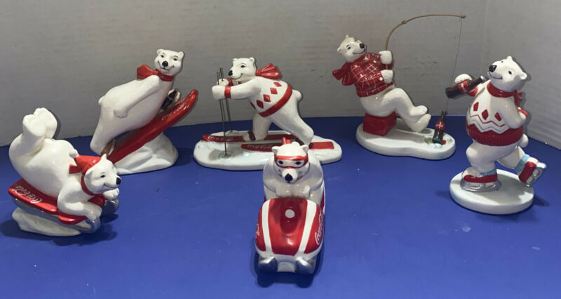 Title (ebay affiliate link): 7 Coca Cola Ceramic Polar Bear Figures Enesco 1995