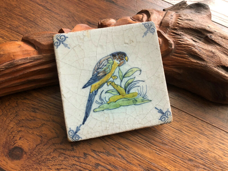 Antique Dutch Delft Tile Bird Depiction Possibly 17th Century 5X5