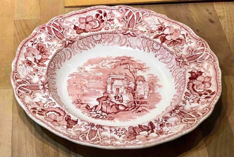 Antique Staffordshire Red Transfer Soup Bowl, "DELHI", England, c. 1835