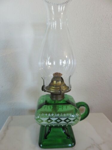 Title (ebay affiliate link): VICTORIAN 19TH CENTURY P&A BLOWN GLASS GREEN FINGER HAND OIL LAMP PAINTED ENAMEL
