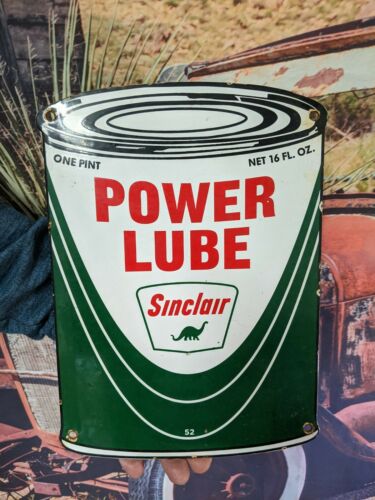 Title (ebay affiliate link): OLD VINTAGE DATED 1952 SINCLAIR POWER LUBE MOTOR OIL CAN PORCELAIN GAS PUMP SIGN