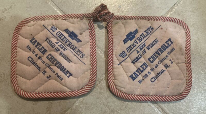 Lot 2 Vintage Chevrolet Car Dealer Advertising Potholders Kayler Clinton NJ 1962