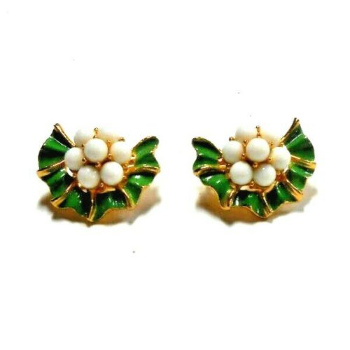 Title (ebay affiliate link): Signed Trifari Gold Tone Milk Glass Flower Earrings circa 1960