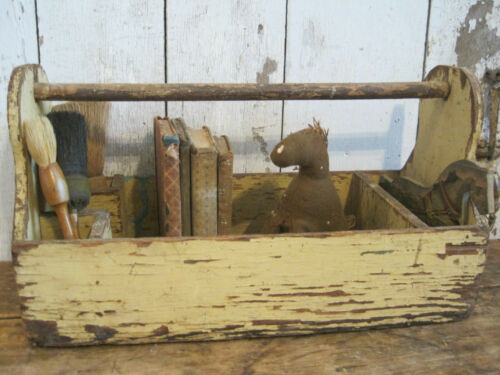 Title (ebay affiliate link): Vintage Primitive Original Yellow Paint Wood Divided Carrier with a Handle AAFA