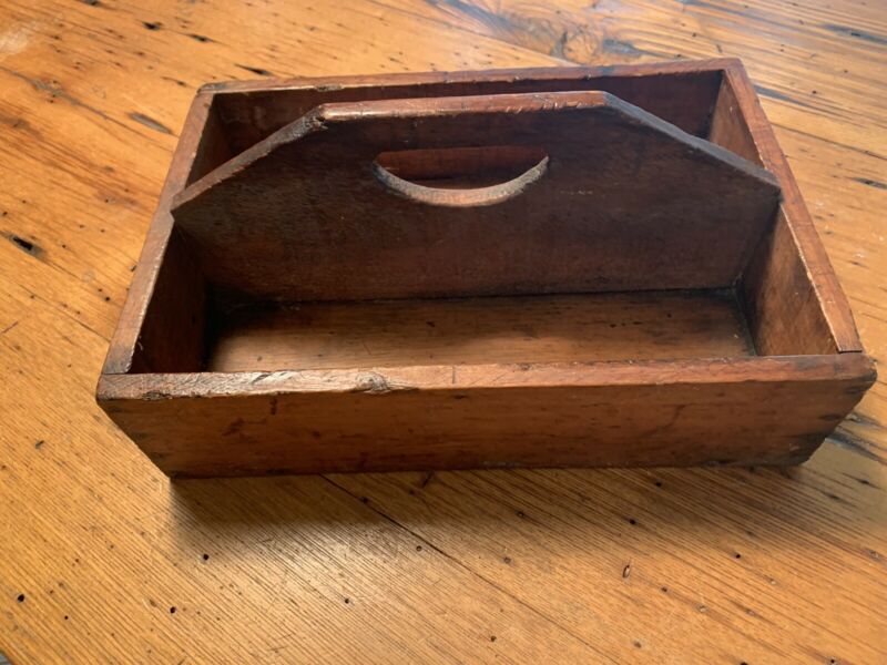 Title (ebay affiliate link): Antique Primitive Wood Divided Utensil Cutlery Tool Box Carrier With Handle