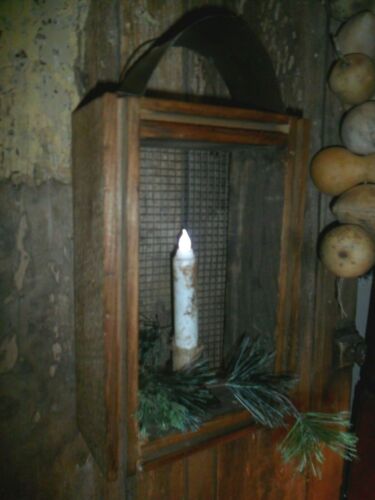 Primitive Early Look Lighting, Rustic Homestead Wooden Lantern, Battery Candle