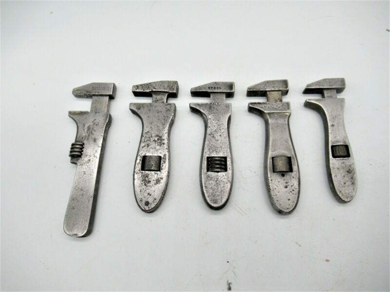 5 Antique Wrenches: King Dick Tent Sheffield Billings Barnls (Barnes?) Unmarked